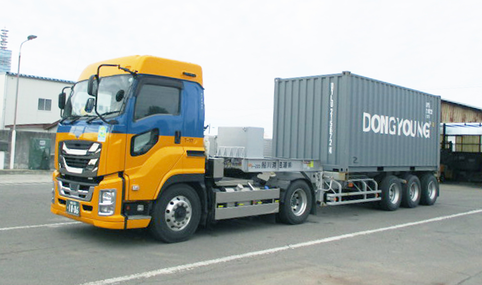 保有台数:平型トラック,ダンプトラック,海上コンテナトレーラー,セメントローリー外33両,ショベルローダー3両。