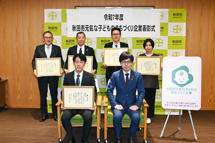 また2025年3月、くるみんの認定を受けた企業の中から、より高い水準の取組を行い一定の基準を満たしたとして、特例認定(プラチナくるみん認定)を受けました。秋田県内で2社目の認定です。2025年11月には、秋田市元気な子どものまちづくり表彰企業で「特別賞」を受賞しました。